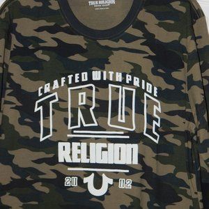 NWT MEN TRUE RELIGION CWP Graphic Crew Neck Long Sleeve CAMO T SHIRT LARGE