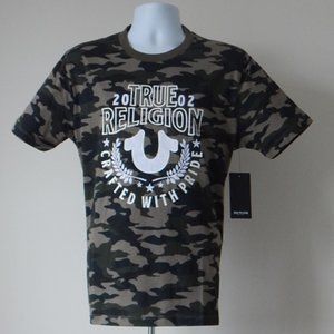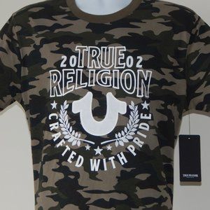 NWT MEN TRUE RELIGION Crafted With Pride Horseshoe GRAPHIC CAMO Green T Shirt LG