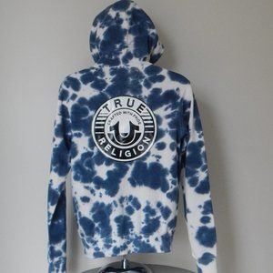 NWT MEN'S TRUE RELIGION BUDDHA TIE DYE PULLOVER HOODIE JACKET DRK BLUE WHITE