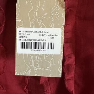 NWT MESHKI Maxi Slip Dress Very High Slit Size XS Red Ruffles Cocktail Holiday