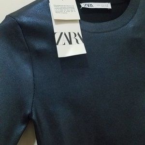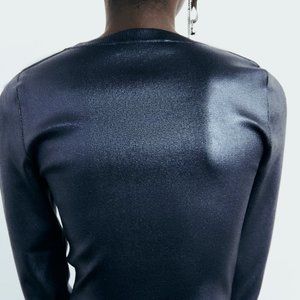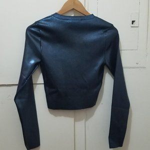 NWT METALLIC BLUE FOIL KNIT CROP TOP