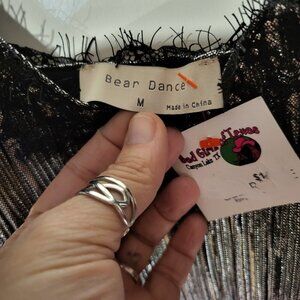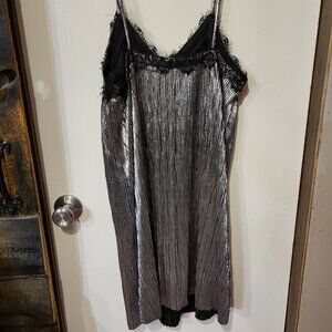 METALLIC SILVER DRESS WITH BLACK LACE TRIM