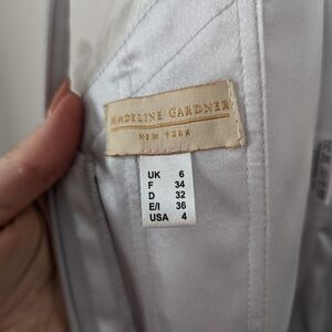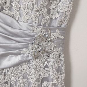 NWT MGNY Madeline Gardner Silver Sequin Floral Lace Satin Tulle Embellished Gown