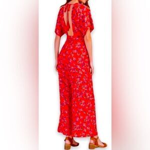 Miami Red Floral Open Back Jumpsuit With Pockets 💕😍💕