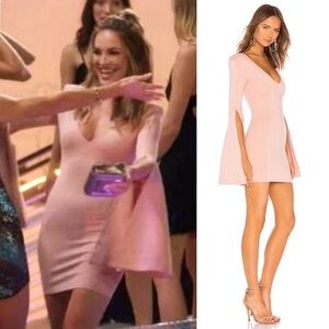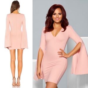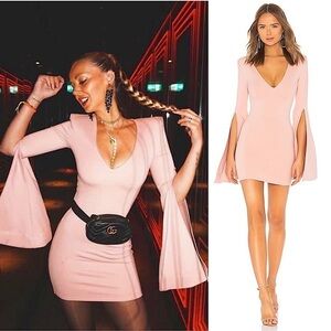 NWT MICHAEL COSTELLO X REVOLVE 70s Long Bell Sleeve V-Neck Bodycon Mini Dress M