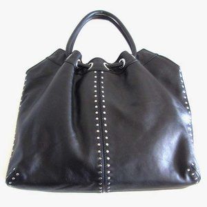 Beautiful black MICHAEL KORS ( Style: Astor ) large shoulder bag / tote with stud details, silver tone hardware, top double magnetic snap closure and double rounded leather handles. Interior is lined black signature fabric and has a zip, cellphone, and multi-function slip pockets. Approx. Measurements: 17.5"(L) X 13"(H) X 3.5"(D). Condition: New with tag and Michael Kors dust bag.