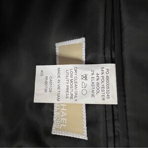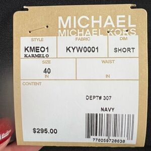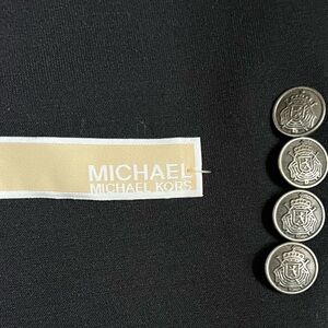 Dark navy suit jacket/sports coat from Michael Kors in a size 40. This jacket is made from a wool blend. The jacket features two button closure, four button cuffs, and shoulder pads. The jacket is in a very dark navy shade that looks black in some lights. The jacket is new without tags and has no flaws.