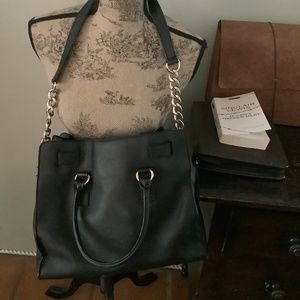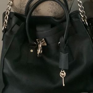 Nwt Michael Kors Black Leather Large Handbag in Hamilton style for a large carry all for 2021. This has never been carried and is a classic style and a gorgeous bag that compliments whatever you are wearing. You don’t have to think twice about whether this is the “right bag for whatever you are wearing or wherever you are going. Lots of compartments; zippers for privacy, enough room for Iphone, Ipad, cosmetic bag, bank cards, etc. This bag carry’s it all.