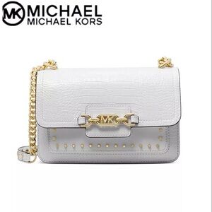 NWT MICHAEL KORS Heather Large Studded Crocodile Embossed Leather Shoulder Bag