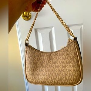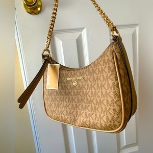 NWT MICHAEL KORS JET SET CHARM CAMEL SM CHAIN POUCHETTE