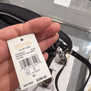 NWT MICHAEL KORS JET SET GLAM SMALL OVAL CROSSBODY BLACK MK