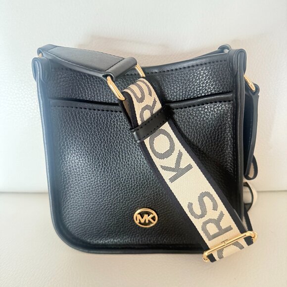 NWT MICHAEL KORS LUISA SMALL NS PHONE CROSSBODY BAG BLACK LEATHER $198 PURSE