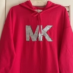NWT MICHAEL KORS RED FRONT SILVER LOGO WOMAN HOODIE SIZE US L NEW WITH TAG