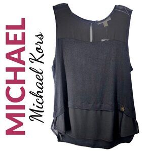 NWT MICHAEL KORS SLEEVELESS BLACK BLOUSE SEMI SHEER BODICE, SIZE LARGE