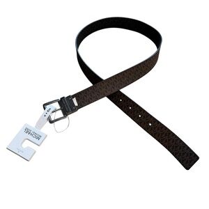 NWT MICHAEL KORS Signature Monogram Logo Brow Black Reversible Belt size S L12