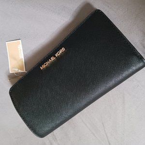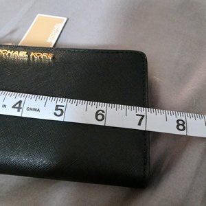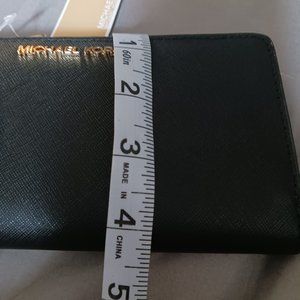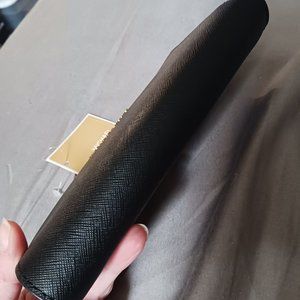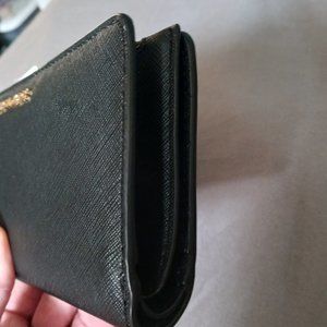 This is in FLAWLESS condition! This comes to NEW, with tags attached and NO damages of any kind! This is a black leather wallet with gold hardware!