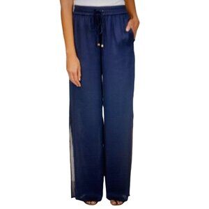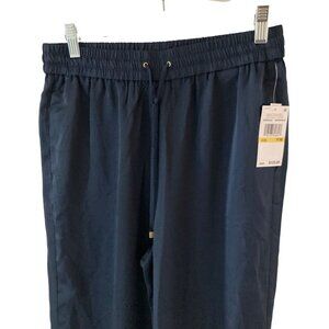NWT MICHAEL KORS WOMENS SOLID HIGH-SLIT PULL-O MIDNIGHT BLUE PM MSRP $125.00 these pants have a sliky sleek feel and will have an easy elegance. These hammered-satin pants from MICHAEL Michael Kors features flowy legs with sleek high slits and sophisticated appeal. Pull ON pants that tie at waist High leg slits Pockets at sides Polyester (60% recycled); pocket bag: polyester (55% recycled) Machine washable Imported Laying flat the waist is 15" Hips 18" Inseam 27"" Thank you for checking out my closet! Please let me know if you have any questions or need measurements. Offers Welcome Clean and smoke free environment. Condition: New With Tags