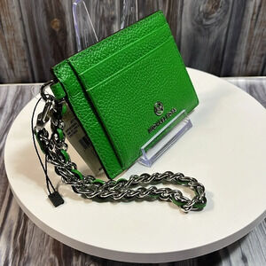NWT MICHAEL KORS WRISTLET CARD HOLDER IN GREEN LEATHER.