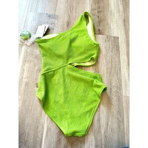 This Michael Kors one-shoulder swimsuit in a bright green color is calling your name! With its chic side cut-out and a flattering ribbed texture, you'll be the undisputed queen of the beach or pool.