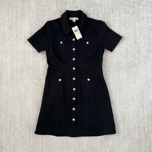 NWT MICHAEL Michael Kors Black Stretch Ponte Mini Shirtdress M