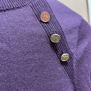 A sophisticated sweater with gold MK logo buttons at the front shoulder/sleeve area