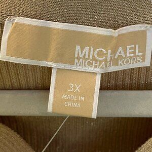NWT MICHAEL Michael Kors Metallic Criss Cross Neckline Long Sleeve Top Sz. 1X