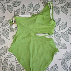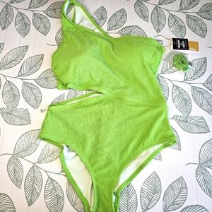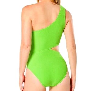 NWT!!! MICHAEL Michael Kors Ribbed One-Shoulder Side-Cutout Swimsuit, Size 14