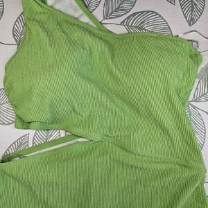Vibrant green fabric with a textured design. Features a Michael Kors tag.