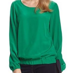Beautiful blouson style top in Navy Blue, cinched bottom with waist tie. Purchased from a reputable Department Store. Fits true to size. Great addition to any wardrobe. ๐ 100% Polyester