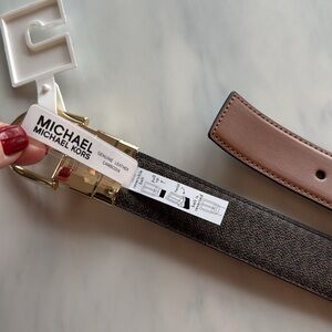 NWT MICHAEL Michael Kors Twist Reversible Belt Brown W/Gold Logo Buckle Large