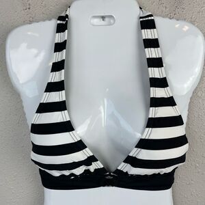 Super cute two-piece black and white striped bikini top and bottoms by Michael Michael Kors.