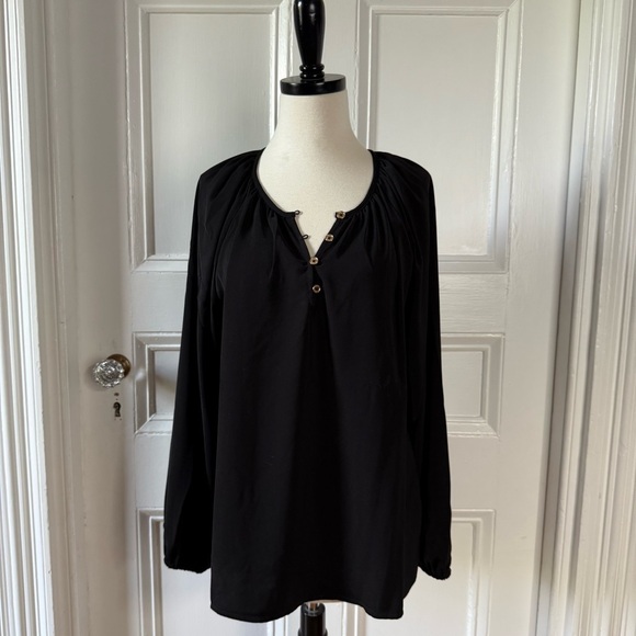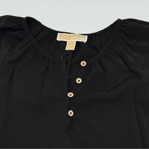 NWT MICHAEL Michael Kors Women’s Elegant Black Flowing Top Gold Buttons Large