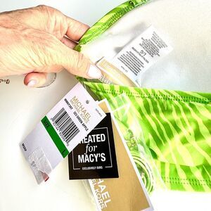 NWT MICHAEL Michael Kors women's animal-print halter swimsuit top, in a vibrant green and lime green zebra-like pattern.