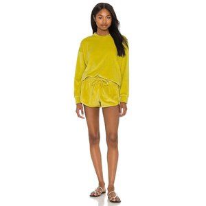 MIKOH Kimo 2 Sweatshirt Pullover Sweater Crew Neck Comfy Velour Yellow Size 2/M Sweater only, shorts not included NWT 100% poly. Crew Neck Comfy Velour fabric. Slightly Oversized with drop shoulder Item not sold as a set. Imported. Revolve Style No. MIKO-WK10. Ships next business day. Offers welcome!