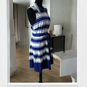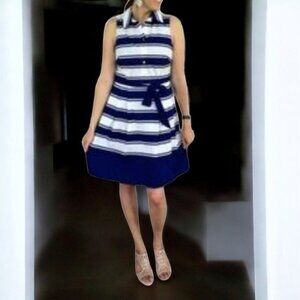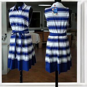 NWT MILLY ( 12 ) Sleeveless Blue White Strip Belted Above Knee Dress