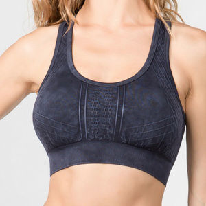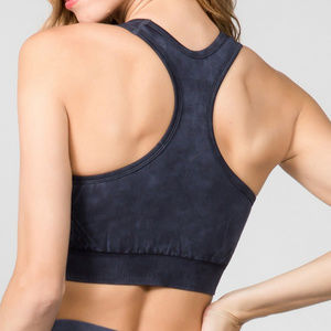 Buttery soft and supportive sports bra with removable pad inserts in a black mineral wash rinse.