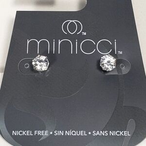 NWT MINICCI Silver tone Shiny Round cut Crystal Stud Earrings