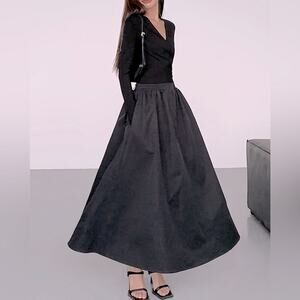 NWT MINIMALIST MODERN lovers COMMENSE black full skirt wrap top dress