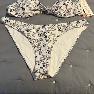 NWT MINK PINK - White Floral DAWSON TIE BIKINI SET M Top L Bottom