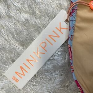 NWT MINKPINK Blue Pink Floral Chloe Mid Rise Bikini Bottoms Sz Medium