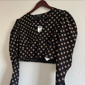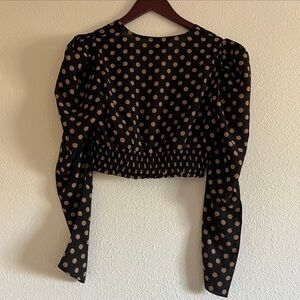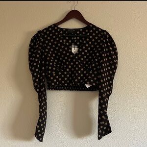 NWT MINKPINK by Revolve Ayat Wrap Crop Top Black with Tan Polka Dot Size Medium