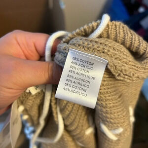 Brand new with tags. Really cute tan lace up sweater. WOMENS size medium/large. Length 27” Armpit to armpit 24.5”
