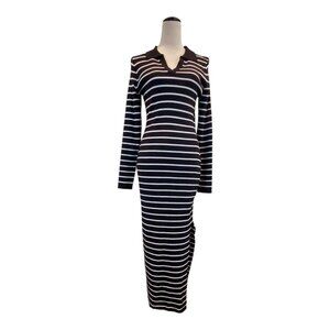 NWT MIROL Striped Bodycon Maxi Dress Long Sleeve V Neck Side Slit Sweater Dress