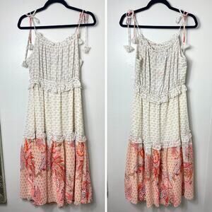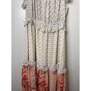 NWT MISA DRESS MIDI FLORAL TIERED RUFFLE COTTAGECORE BOHO CHIC CORAL PEACH BEIGE