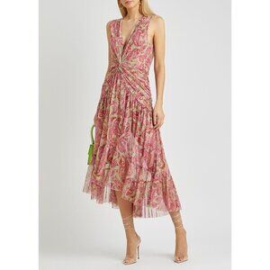 NWT MISA LA Ava Paisley Print Stretch Maxi Dress V-Neck Tulle Size XS $355