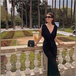 NWT MISA LOS ANGELES Xenia Dress Black Draped Jersey Knot Front. This dress is in great used condition