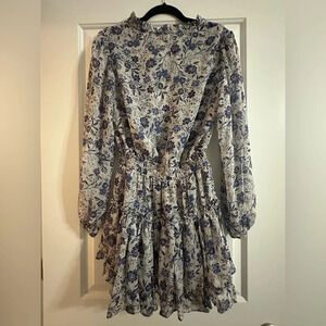 NWT MISA Lorena XS Long Sleeve Mini Dresss Size XS Floral Chiffon Tiered Skirt
