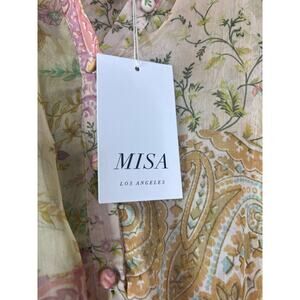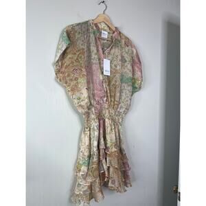 NWT MISA Los Angeles Evie Patchwork Smocked Cap Sleeve Lined Mini Dress Sz Large