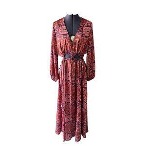 NWT MISA Los Angeles Kasia Maxi Dress Septima Tapestry Satin Cut-Outs M