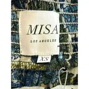 MSRP $395 NWT MISA Los Angeles REVOLVE Zoe Maxi skirt Flora Azulia and Blue Astra Size XS boho floral layered mettallic accents silver green GORGEOUS elastic waist